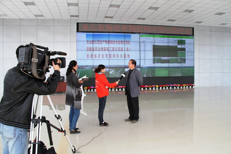 安徽卫视记者深入农场农业物联网应用示范中心、智能温室大棚、农业社会化服务中心、小麦大田、农业科技园区等场所,拍摄了大量视频资料,采写了农业生产素材。(李峰)