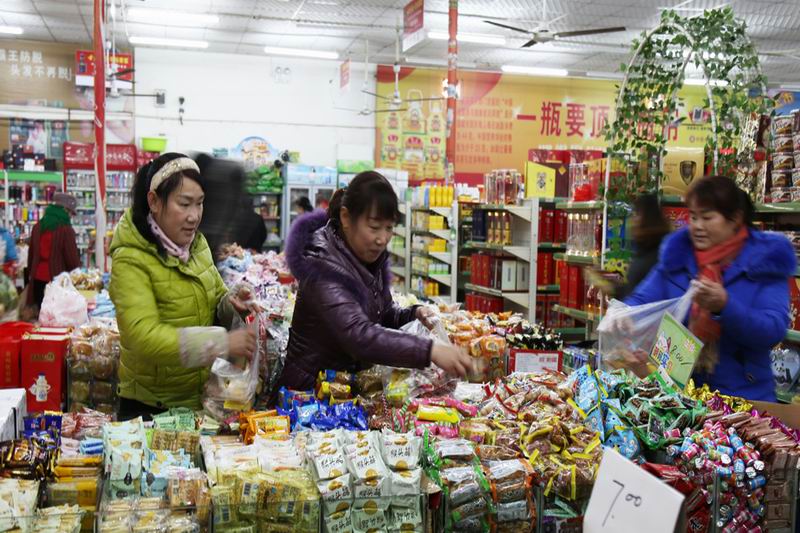 新春佳节临近,华阳河农场到处洋溢着浓浓年味。农历腊月下旬,社区居民纷纷涌进大小商铺,开心办年货、快乐迎新年,忙着选春联、购灯笼,炸圆子、蒸包子……,大街小巷人头攒动、络绎不绝、热闹非凡。商场超市里,各种生鲜果蔬应有尽有、商品琳琅满目,吸引得众多居民进店选购。(李龙)