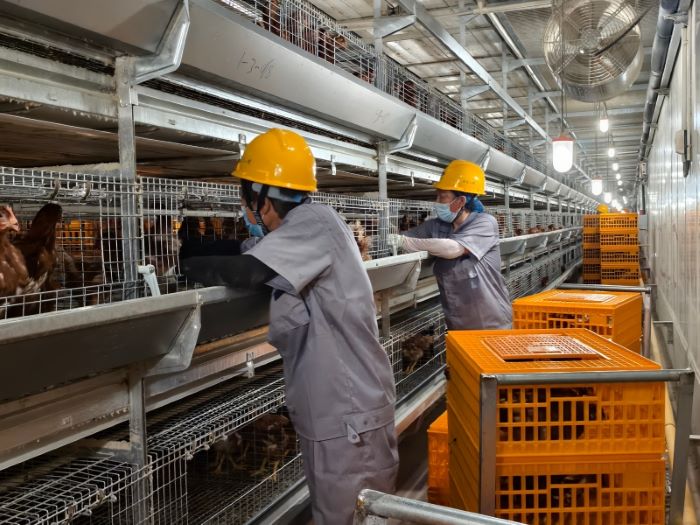 7月26日早晨,江南茶海禽业公司的百万羽蛋鸡养殖场内,随着最后一车青年鸡顺利进舍入笼,首批青年鸡转群工作顺利完成,33.4万只80日龄的优质蛋鸡,在青年鸡场“光荣毕业”,正式转入蛋鸡养殖场。