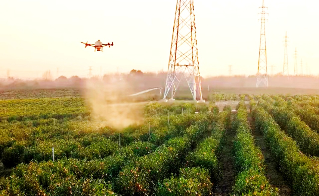 祠山岗茶场利用植保无人机开展喷施石硫合剂作业(李星辰 摄)