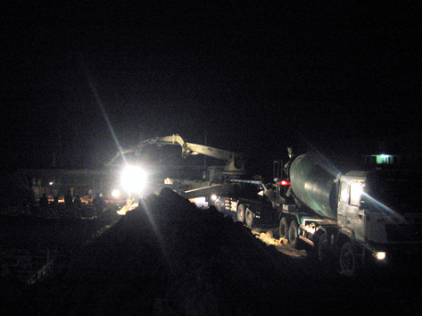 开云手机登录入口焦岗湖农场廉租住房夏丽花园工程在完成施工围墙、施工道路和定位放样及施工水电安装的基础上,于11月20日下午开始基槽开挖工作。截至12月5日,16栋房中已开挖13栋,其中完成10栋(有6栋具备基础浇筑条件)。经项目监理单位检验认可,地方城建质量、安全等监督部门审查合格后,基础浇筑工作于12月6日展开。经过施工、监理和业主夜以继日的辛勤努力,浇筑工作于8日上午完工。此次基础浇筑,除1栋楼房采用自拌混凝土外,其余5栋楼房全部采用商砼。采用自拌混凝土的能够严格按照实验室提供的配合比进行操作,完全符合质量要求。