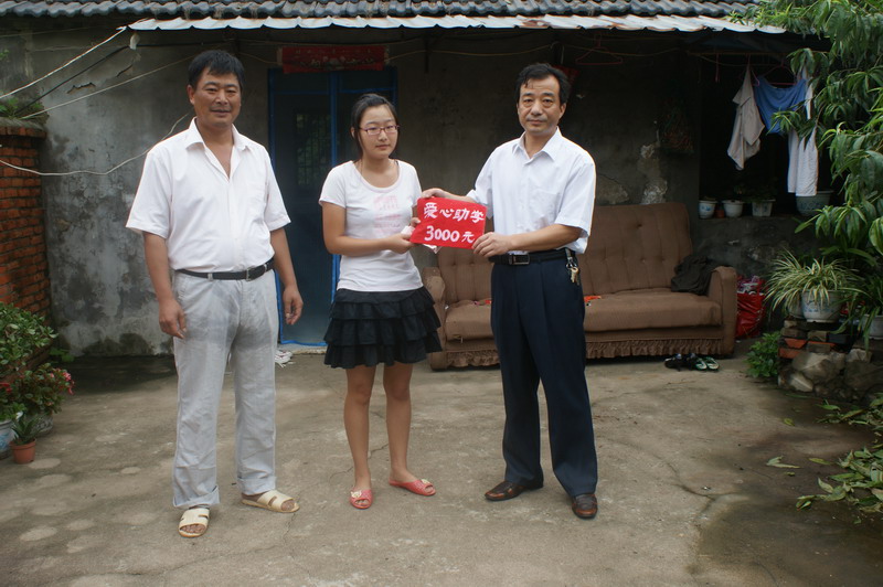 在新学年开学之际,大圹圩农场工会主席杨朝幸将3000元“爱心助学”款送到刚刚考上大学的农场职工崔海军女儿手中,同时勉励她要勤奋学习,练好本领,将来报效国家,回馈社会。