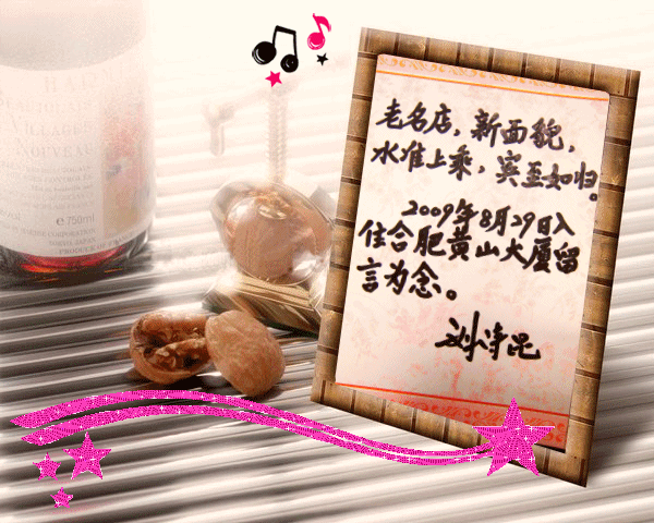 8月29日,我国著名钢琴家刘诗昆下榻开云手机登录入口黄山大厦城市商务酒店,并题词留念。