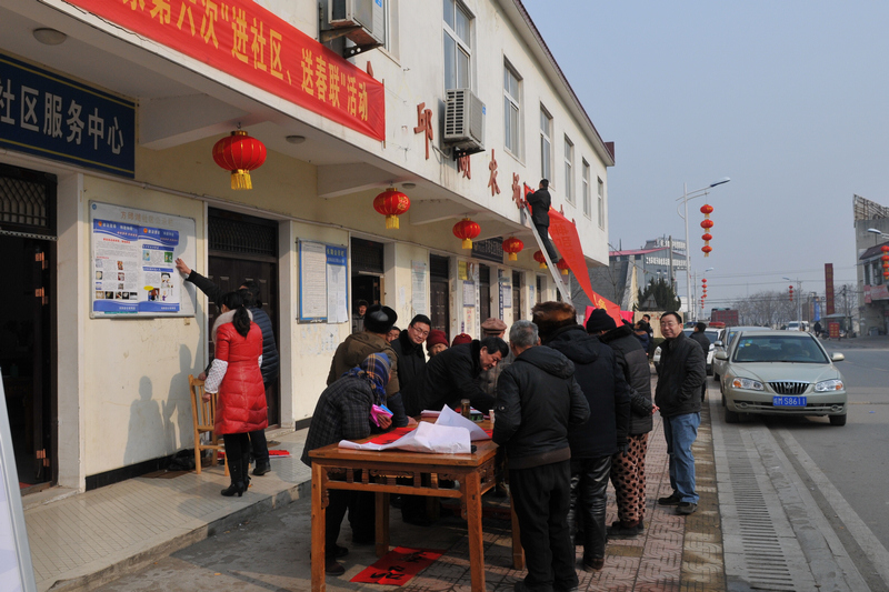 2月5日,猴年春节将至,方邱湖农场梅山花园职工小区内,火红彩旗随风飘,大红灯笼高高挂,洋溢着浓浓的过年氛围。当天上午,凤阳县法官警官莅临社区向居民义务宣传珍爱生命、远离毒品和严禁赌博等违法行为,县法院及农场书法爱好者现场书写赠送春联560多幅。社区居民们怀着喜悦的心情,听警官讲解、看宣传展板、领普法资料,排队等候自家满意春联,一派欢乐祥和景象。