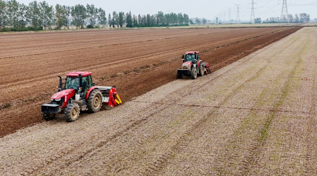寿西湖农场旋耕、施肥、播种、镇压一体作业。(董云 摄)