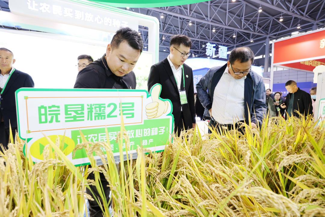 “科技之源”展区前,不少参会游客驻足观看,饶有兴趣地观看被设计成“种子魔方”的透明地板,陈列了13个国审及57个省审品种实物,充分展示了皖垦种业专业从事农作物种子研发、生产、销售及技术服务等,直观地展现皖垦种业的育种水平。