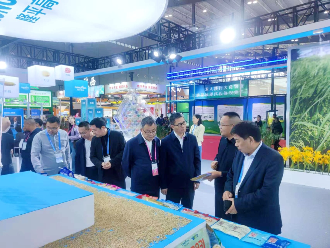 博览会上,张其广考察了粮油大省精品、大豆产业、水肥一体化设备、现代设施农业等展区,详细了解粮油和大豆产业新品种、新技术、新装备,从源头良种到现代农机设备,从精深加工到终端产品,近距离考察粮油和大豆产业升级之路。