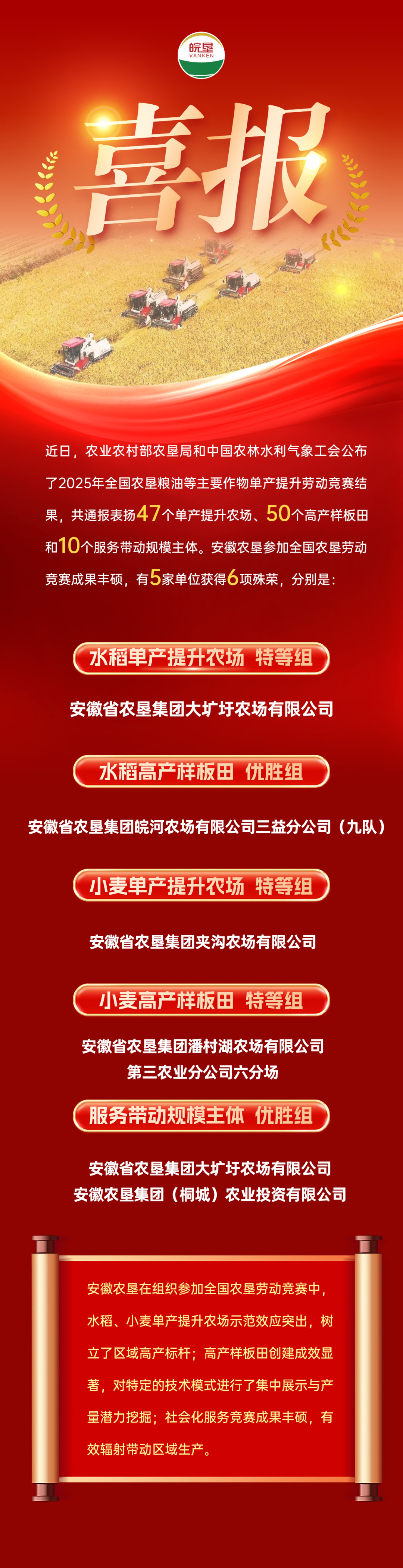 喜报丨开云手机登录入口这5家单位获全国农垦粮油单产竞赛6项殊荣