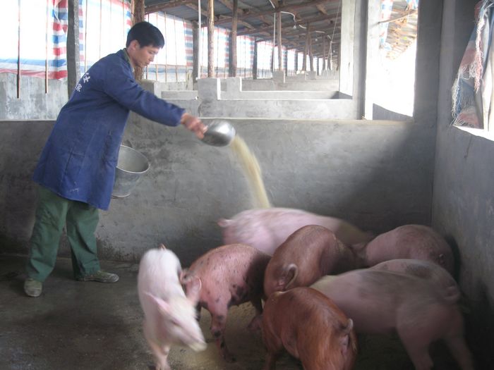 陈长才是安庆北郊十里铺乡养殖专业户,他在猪圈旁一边喂猪,一边谈起他的“养殖经”。原来小陈出生于养猪世家,父亲也是农民出身,原籍位于安庆东郊老峰镇。上世纪六七十年代,还是大集体的时候,父亲就是当地远近闻名的养猪状元。父亲后来就把养猪技术传给了四个儿子,四个儿子凭着家传绝活儿分别办了各自的养猪场,日子都过得很红火。小儿子陈长才1996年就开始养猪,先后在东郊老峰镇、北郊十里铺乡发展,带动100多户农民养猪致富,扶持不少贫困户脱贫增收。小有成就的陈长才在市区买了房子、有了小车,成为城市一族,但他的实业仍然在近郊农村。