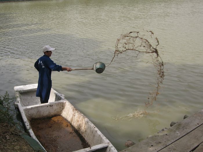 标准化养殖是低碳养殖的一种方式,农场科技示范户陈庆文经营的标准化养殖示范小区也是典型的低碳养殖。他的养殖小区里有猪场、鱼塘、黄鳝基地,形成了循环养殖。良种猪场占地900平方米,标准化猪舍242间,他用玉米饲料喂猪的同时,坚持搭配蔬菜边角料、猪粪喂鱼,减少二氧化碳排放,冬季用沼气发电为猪舍增温。养鱼不用精饲料,而是鱼草、猪粪和菜饼,这样既减少了成本,又提高了鱼肉的质量。